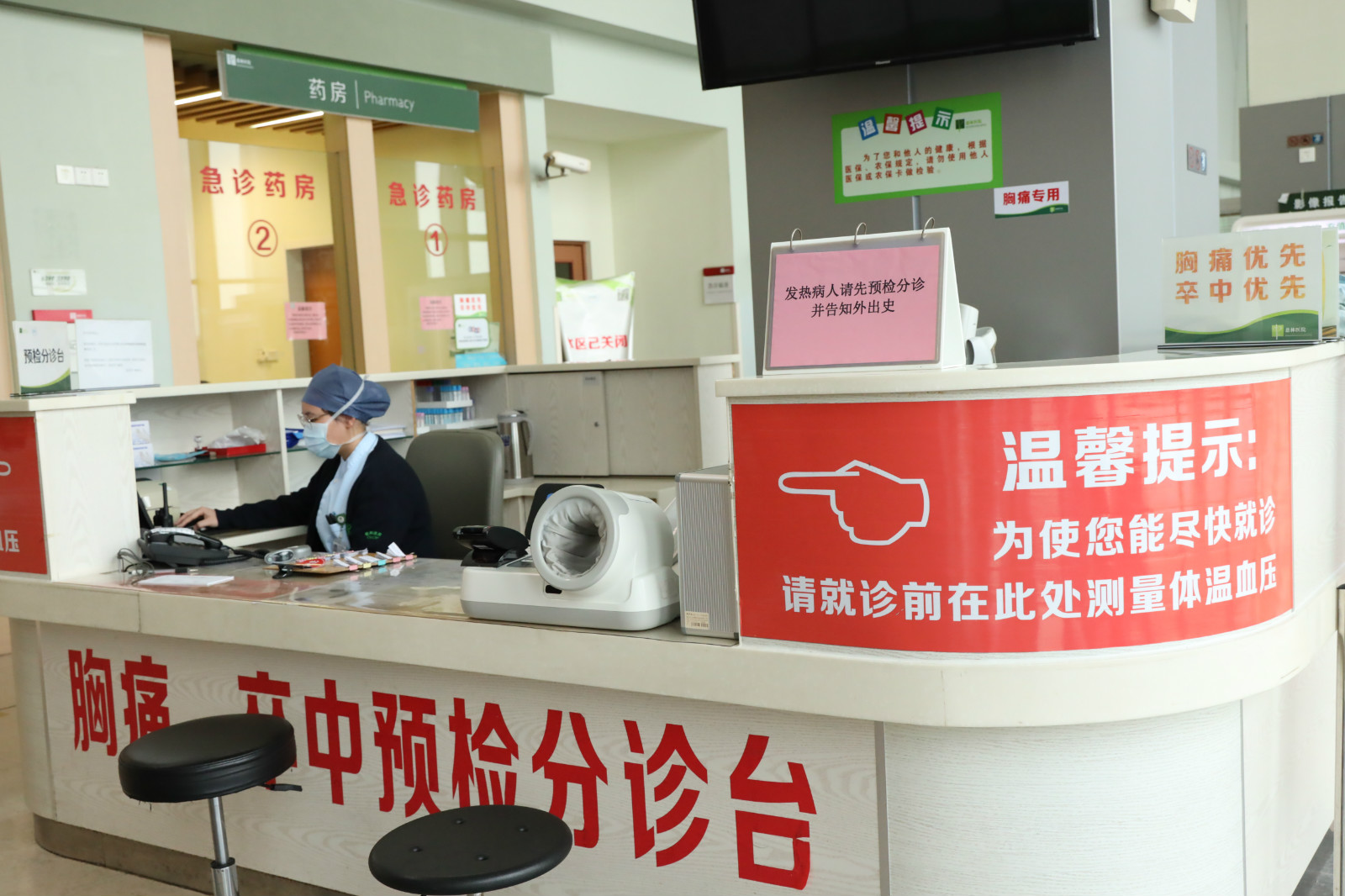 我们在急诊分诊处、一站式服务中心等处都设立了明显标识,引导发热患者预诊分检,减少交叉感染的几率。
